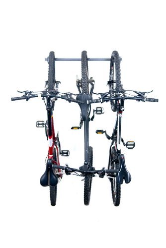 Tire Sizes: All sizes will hang on the MB Bike Rack.. MB-005 Features: -Bike rack.-Material: Industrial steel.-Hooks are plastic coated.-Not limited to any particular size.-Holds up to 3 adult Mt bikes.-Rated at 200 lbs. Includes: -Kit includes: 2 small brackets, 4 screws and washers, 1 bar, 3- J hooks, installation instructions. Color/Finish: -Color: Soapstone Gray.-Finish: Powder coated. Assembly Instructions: -Assembly required. Dimensions: -Dimension: 3'' H x 4'' W x 35'' D. Warranty: -Limited lifetime warranty.