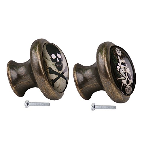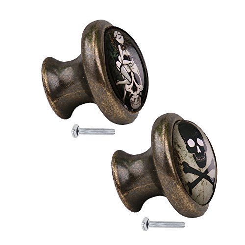 monkeyjack 2pcsスカルパターンヴィンテージメタルドアノブキャビネット引き出しビンドレッサー食器棚プルハンドルノブ家具ハードウェア# 4