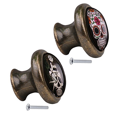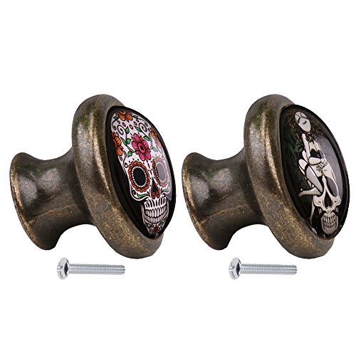 monkeyjack 2pcsスカルパターンヴィンテージメタルドアノブキャビネット引き出しビンドレッサー食器棚プルハンドルノブ家具ハードウェア# 3
