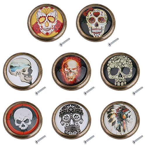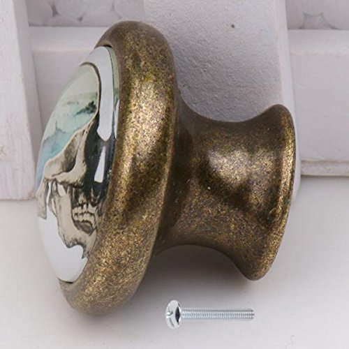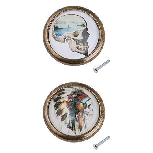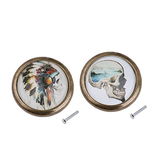 monkeyjack 2pcsスカルパターンヴィンテージメタルドアノブキャビネット引き出しビンドレッサー食器棚プルハンドルノブ家具ハードウェア# 9