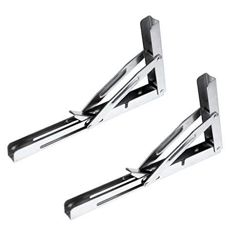 monkeyjack 2ピースHeavy Duty 304ステンレススチール折りたたみシェルフベンチテーブルシェルフ三角形またはブラケットサポート最大。ロード550lb / 250kg