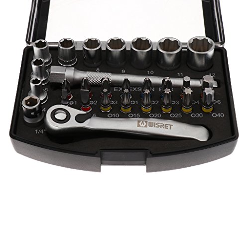仕様: – 1ピース1 / 4 "デュアルラチェットレンチ: 93 mm – 8 pieces : 1 / 4 "用スリーブが6 - 4 mm 5 mm 6 mm 7 mm 8 mm 10 mm 11 mm 12 mm – 1ピース1 / 4 "延長ロッド: 100 mm – 1ピース1 / 4 "ビットホルダー – リボンs2ドライバービット、磁気: – 2ピースビット: 3 mm 4 mm 5 mm – 3ピースクロスph1 ph2 ph3 – 6つのスター: t15 t20 t25 t27 t30 – 2ピース六角h4 h6 – 3ピースのビットから構成されます。pz1 pz2 pz3