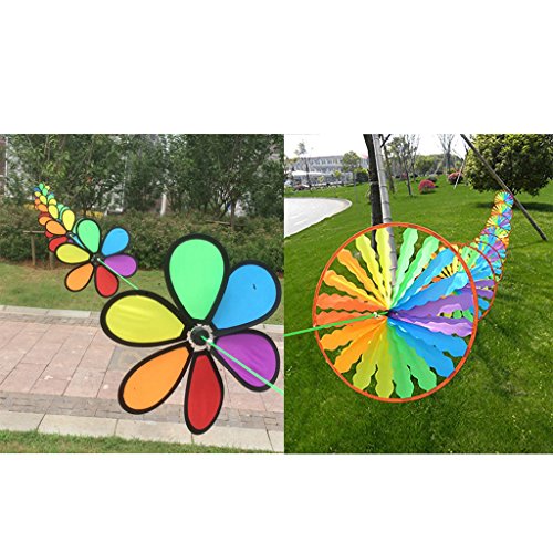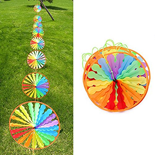 monkeyjack 8ピースレインボーラウンドWhirligigホイール10 M風車文字列庭屋外装飾