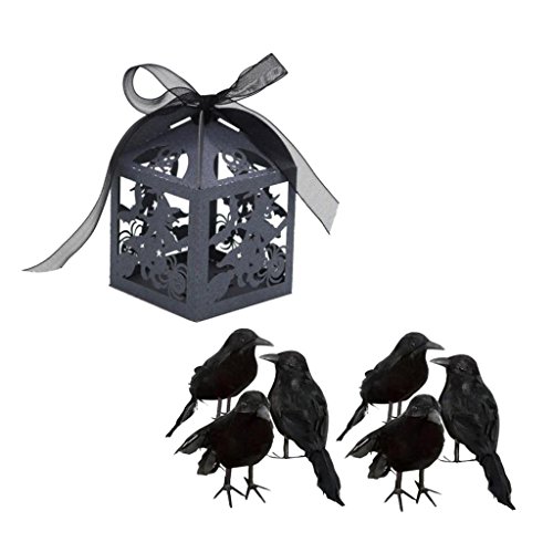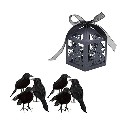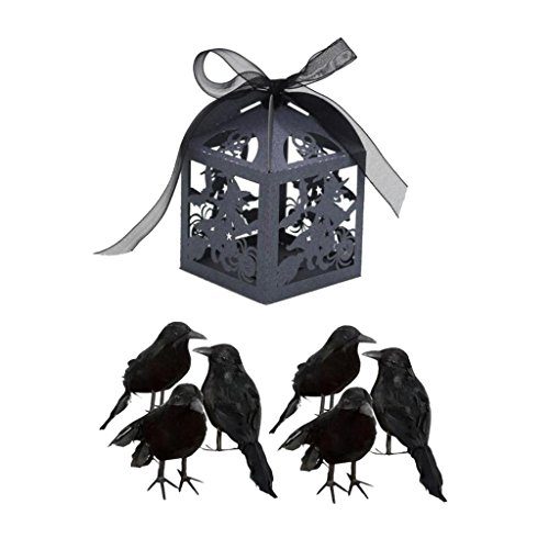 monkeyjack 6piecesブラックFeathered Crows Birds Ravens Halloween Decor & 50piecesキャンディボックス