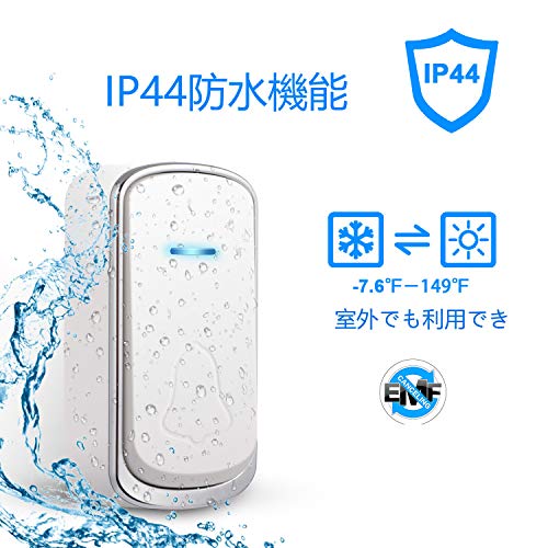 - 【280m無線範囲&音楽選択】高感度な受信機を採用して、電波の飛距離は屋外見通し、最大280mの無線範囲が届けられます。広い家でも安心です!呼出音楽は36メロディーを選択可能です。受信音量は4段階あります。お好みに合わせて選択できます。