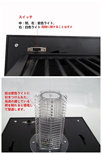 - LED&強力電圧。 LED害虫誘引ライトにおびき寄せられ、ブーンとやってくる蚊や小虫を強力電圧でバチバチッと一気に撃殺します。