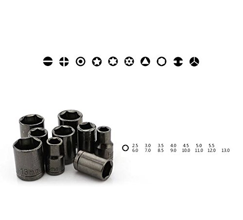 - 【内容】グリップ2種類、延長バー(エクステンションバー)、ネジレベラー、クロムバナジウム鋼スリーブ10種類、ビット56種類 / 箱のサイズ:長さ20×高さ4.5×幅13.5cm / グリップ部分のサイズ:長さ10cm×直径2cm / 延長バー:10cm / 素材(金属部分):CRV(クロムバナジウム鋼)。