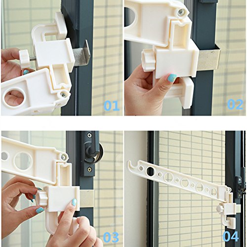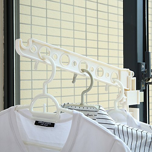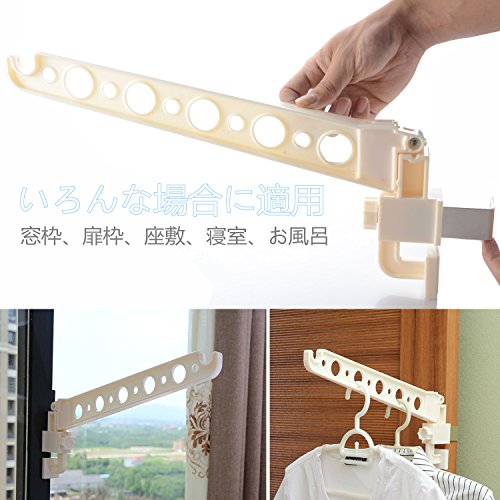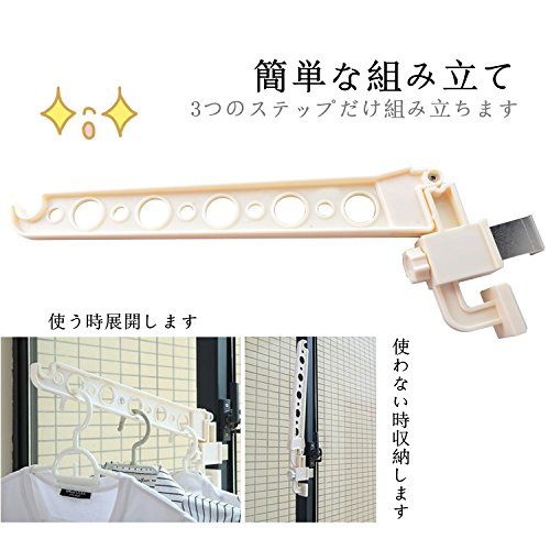 - 「超便利」窓枠などを使用して室内干しできる!ネジやクギ不要!しめるだけで簡単取り付けます。使用時はアームを倒し、ハンガーなどで衣類・洗濯物を掛けます。使用後はコンパクトに折りたためるため、スッキリと収納できます。