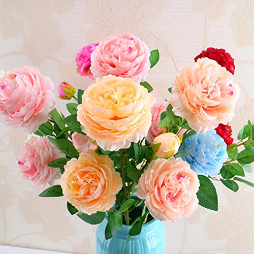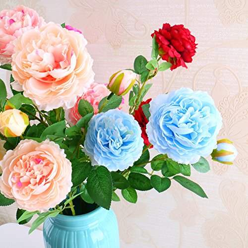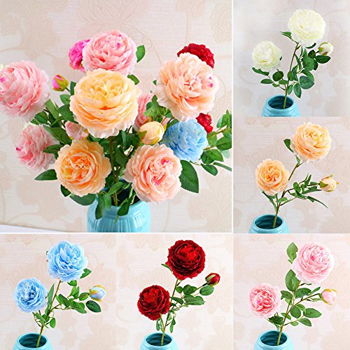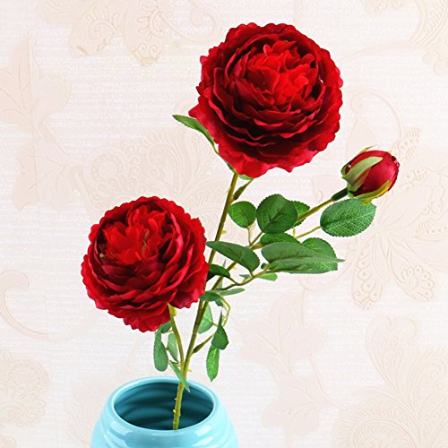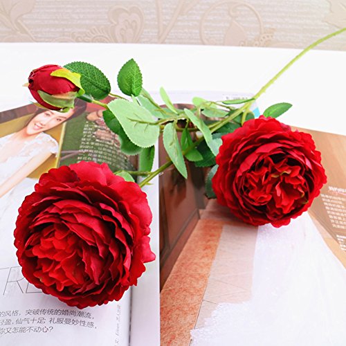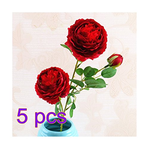 Moobom バラの花 薔薇 上質な造花 人工観葉植物 ブーケ 花束 美しい ロマンチックな雰囲気 ホーム飾り 室内装飾 飾り物 5pcs size 5PCS (Red)