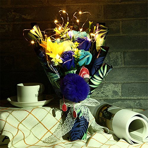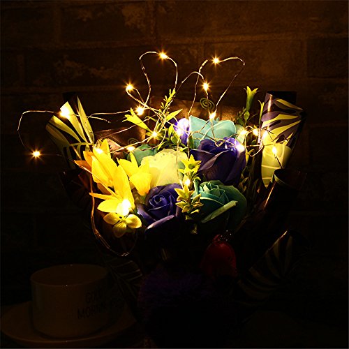 Moobom インスタ LED光るバラ ガーランド 飾り インテリア 花束 ソープフラワー 石鹸花 造花 贈り物 お祝い 枯れない花 (紫)