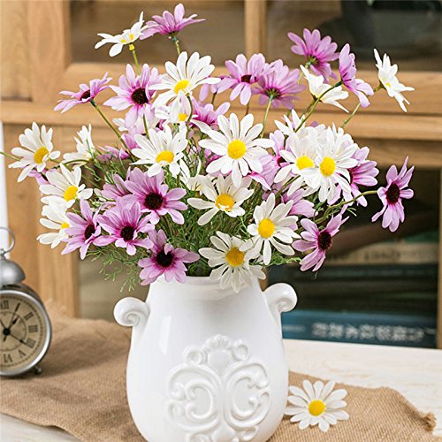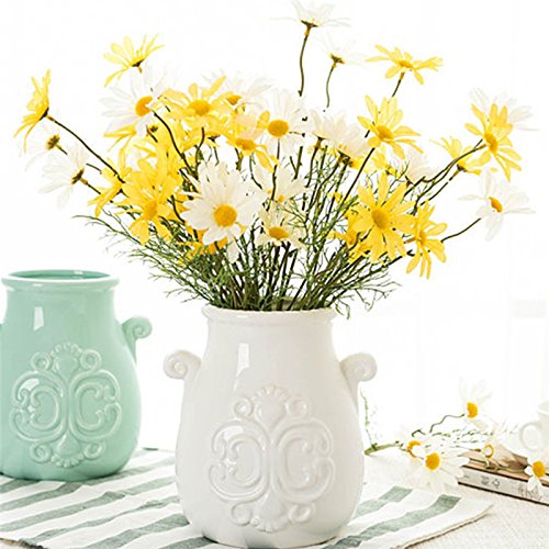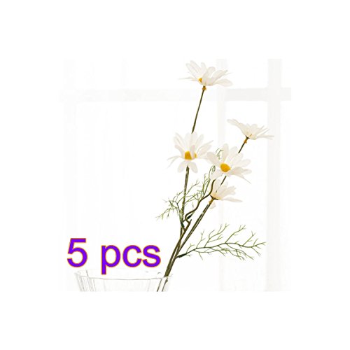 Moobom ヒナギク飾花 雛菊 人工観葉植物 ブーケ 花束 美しい ロマンチックな雰囲気 ホーム飾り 室内装飾 飾り物 5pcs (ホワイト)