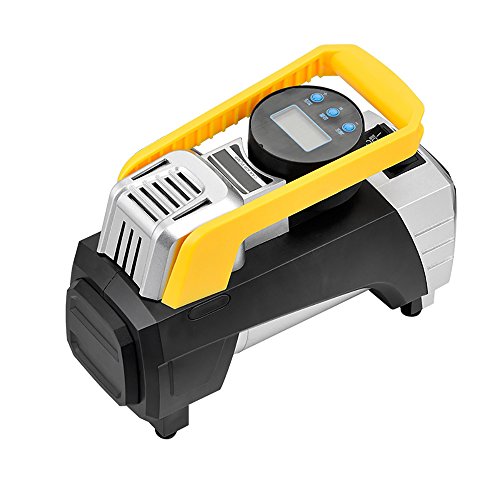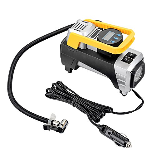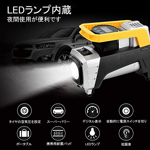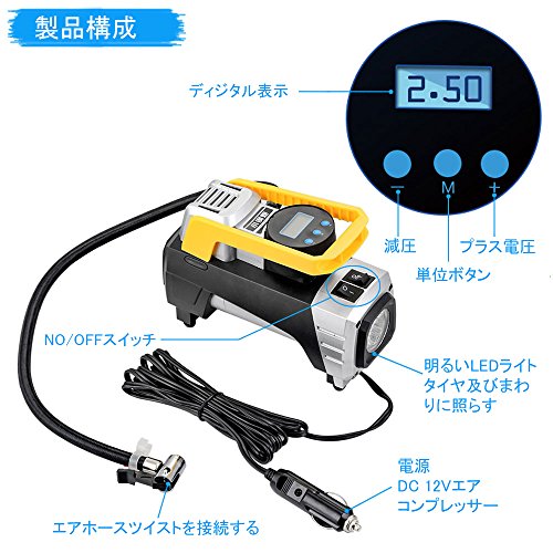 Mookis車用空気入れ、 エアコンプレッサー デジタル表示 LEDライト付き DC12V シガーソケット接続式 3種類アダプターノズル付き/自動車 /バイク /ボール/ 浮き輪 レジャー用品
