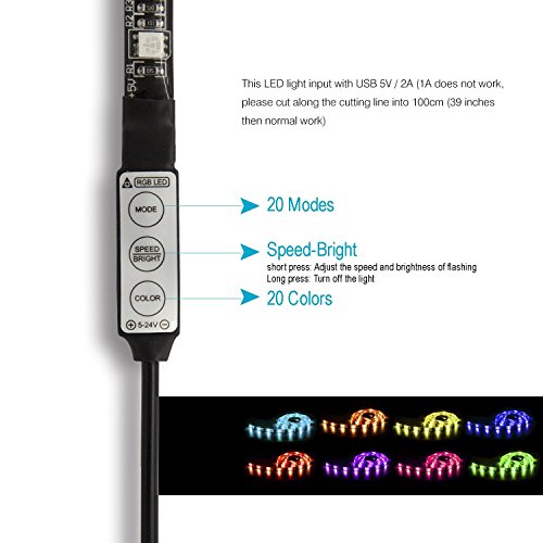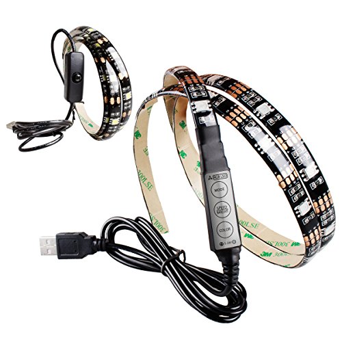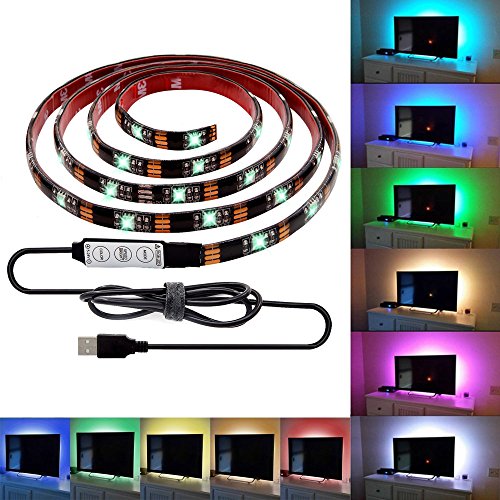 Morpilot 2pcs USB電源供給LEDストリップライトRGB防水柔軟なLEDライトストリップSMD 5050 LEDリボンライトムードライト色が変化するフルキットコントローラ( 0.9 M / 2.9ft )