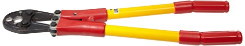 Easy to use MD-6 type 'POP' tool. Bent fiberglass handle provides a solid grip, good leverage, & better durability than wood. Complete crimps are assured with an over-center cam mechanism. Tool can easily be checked visually for proper adjustment & can be adjusted with an Allen wrench. Output Force: 4.5 ton. U-BG Die for #6 - #8 H-Taps & Entrance Splicers sold separately. Weight: 6.2lbs..