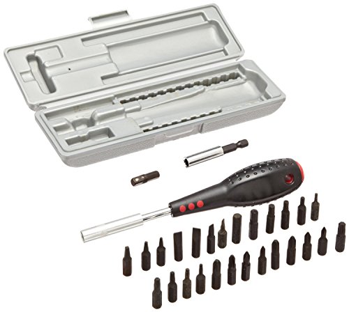 The Morris Products 52172 Ergonomic Cushion Grip Screwdriver 29-Piece Magnetic Bit Set includes one magnetic driver with ergonomic cushion grip handle, one bit holder, one 25 mm socket adapter, and twenty-six 25 mm magnetic steel bits for tightening and loosening screws in hard-to-reach places. The magnetic bits stick to the magnetic driver, which allows the screw to be inserted into the hole without the use of both hands. The bit styles include Phillips, Pozi, hex, slotted, star, and square drives to accommodate a range of screw drives. The magnetic bits are made from chromium-vanadium steel for wear resistance. The handle is made from neoprene and ABS plastic for oil, acid, and impact resistance, and the set comes in a plastic case for storage and organization.Assortment IncludesMagnetic screwdriver with ergonomic grip handleAttachmentsBit holderSocket adapter (25 mm length)26 magnetic screwdriver bits (25 mm length) 4 Phillips bits, sizes: #0, #1, #2, #34 Pozi bits, sizes: #0, #1, #2, #36 hex bits, sizes: 3/32', 1/8', 5/32', 3/10', 7/32', 1/4'4 slotted bits, sizes: 5/32', 3/16', 1/4', 9/32'5 star bits, sizes: T10, T15, T20, T25, T303 square bits, sizes: #0, #1, #2Morris Products manufactures electrical and lighting products such as meters and testers, tools, power connectors, and organizational devices. The company, founded in 1994, is headquartered in Queensboro, NY.What's in the Box?Magnetic screwdriver with ergonomic grip handleBit holderSocket adapter (25 mm length)Plastic carrying case26 magnetic screwdriver bits (25 mm length)4 Phillips bits, sizes: #0, #1, #2, #34 Pozi bits, sizes: #0, #1, #2, #36 hex bits, sizes: 3/32', 1/8', 5/32', 3/10', 7/32', 1/4'4 slotted bits, sizes: 5/32', 3/16', 1/4', 9/32'5 star bits, sizes: T10, T15, T20, T25, T303 square bits, sizes: #0, #1, #2