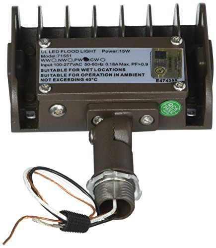 Morris 71551 15 W 5000 K LEDフラットパネルFlood Light with 1 / 2 "調整可能なKnuckleマウント、1414 LM、120 – 277 V、ブロンズ