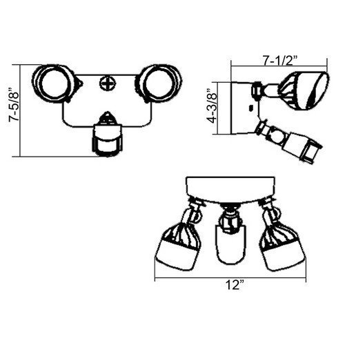 Culus listed. Morris 24W 3000K dual head LED motion activated security flood light saves energy while being very functional. It is ideal for walkways, entrances and patios. Provides years of trouble free service. Time/lux adjustable motion sensitivity, light sensitivity & time delay settings from 10 seconds to 10 minutes. Durable die cast aluminum IP65 weather resistant housing. Can be wall or eave mounted to standard junction box. Tempered glass lens. Fluted prismatic reflector. Morris LED motion activated security flood light Specification as follows - 25,000 hour DRIVER/lamp life expectancy; operating temperature: -4 DegreeF to 122 DegreeF; AC 120V/240V 60Hz voltage; PHILLIPS luxeon m leds; each lamp head has 20 degree beam angle; 240 degree detection angle out to 60Ft; CRI: 75; color temperature: 3000K; powder coat finish in Bronze; culus listed.