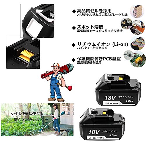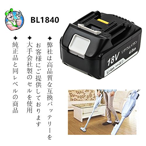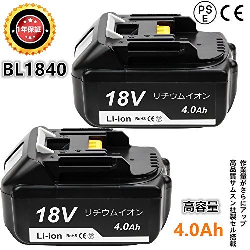 - ◆型番:マキタバッテリー BL1840 マキタ互換バッテリー18v マキタバッテリー 18v 4.0ah 2個セット 電圧:18V 容量:4000mAh リチウムイオンバッテリー 電動工具用