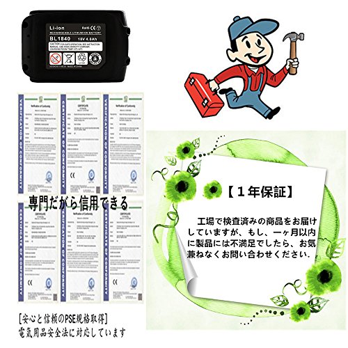 - ◆安心の長期保証付き:1年間! 認証:PSEマーク CEマーク取得済み。新品未使用 ,純正と同じようにマキタ充電器にて充電、使用できます.