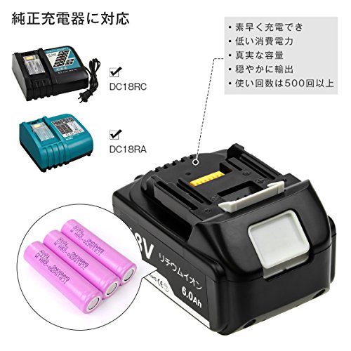 - ◆【 マキタバッテリー 18v マキタ 18v バッテリー マキタ互換バッテリー18v 】電圧:18V 容量:6000mAh(6.0Ah) 電池種類:リチウムイオンバッテリー 高品質サムスンセル採用