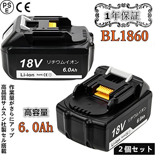 マキタ 18v バッテリー 18vバッテリーマキタ マキタ互換バッテリー18v 6.0ah 2個セット 18vマキタ バッテリー BL1860互換 バッテリー 18v 互換バッテリー 6.0ah bl1860 BL1860 BL1830 BL1840 BL1850 BL1830b BL1840b BL1850b BL1860b 対応 互換電池 マキタバッテリー 6.0ah 大容量 サムスン社セル搭載 黒 【長期1年保証】 Moticett