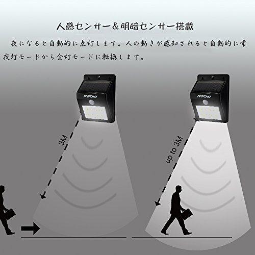 Mpow 8LED ソーラーライト 玄関ライト センサーライト 外灯 太陽発電 省エネ 夜間自動点灯 軒先/庭/ガーデン/庭先/玄関周りなど対応 防犯用 改良版