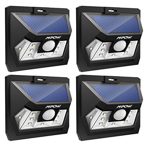 Mpow 10 LED ソーラーライト センサーライト 玄関ライト 防犯ライト ガーデンライト 外灯 壁掛け式 広角照明 太陽発電 省エネ 電気代ゼロ 屋外照明/軒先/ガレージ/庭先/玄関周りなどの照明用 夜間自動点灯 [4点セット]