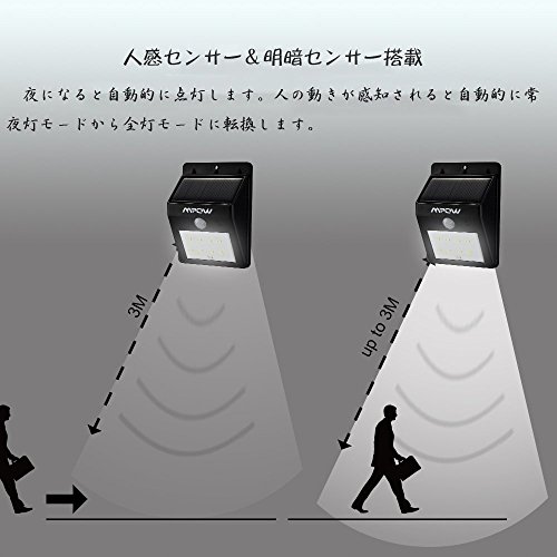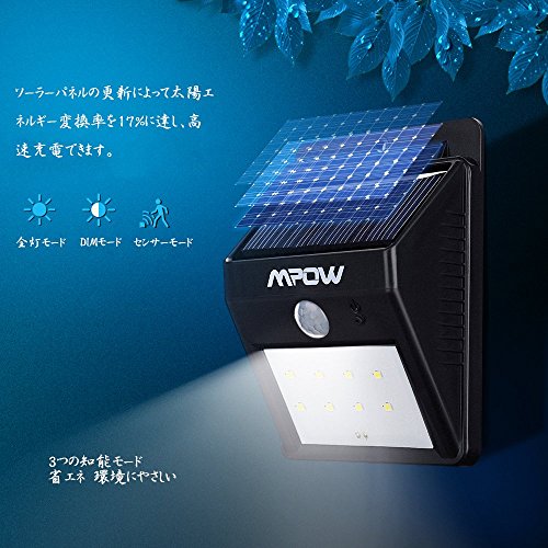 Mpow 8LED ソーラーライト ワイヤレス人感センサー 屋外照明/軒先/壁掛け/庭先/玄関周りなどのライト 夜間自動点灯