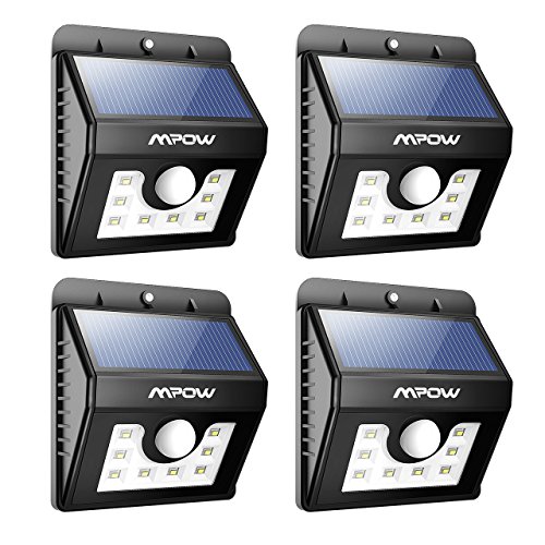 Mpow 8 LED センサーライト ソーラーライト 玄関ライト アウトドアライト センサー搭載 太陽発電 省エネ 夜間自動点灯 軒先/庭/ガーデン/庭先/玄関周りなどの照明用(四点セット)