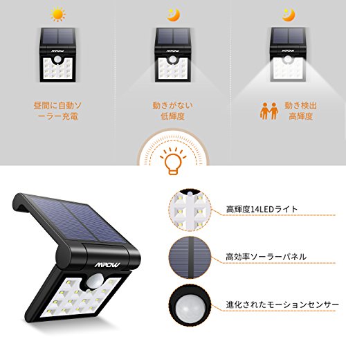 Mpow ソーラーライト センサーライト 14 LED 防犯ライト 屋外ライト 玄関ライト 壁掛け式 折り畳み式 ガーデンライト 広角照明 太陽発電 省エネ 電気代ゼロ 屋外照明/軒先/ガレージ/庭先/玄関周りなどの照明用 夜間自動点灯
