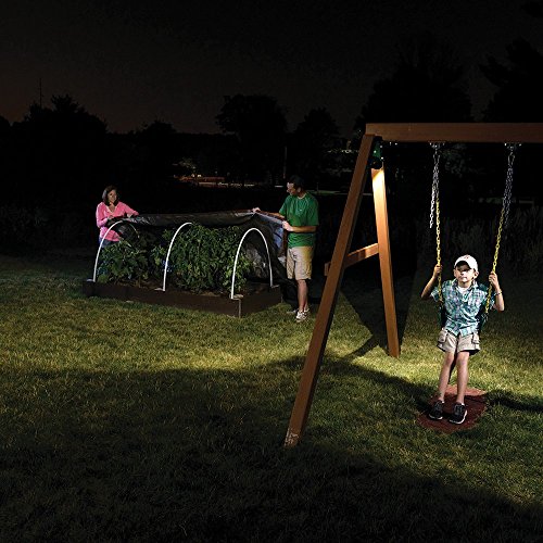 - Motion sensor turns LED spotlight on and off automatically. Built-in light sensor guarantees activation after dark to conserve battery life