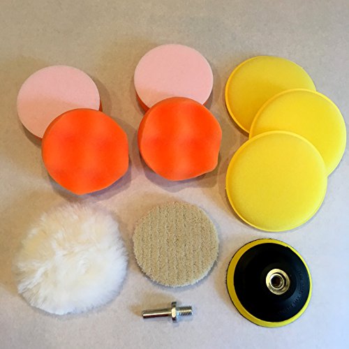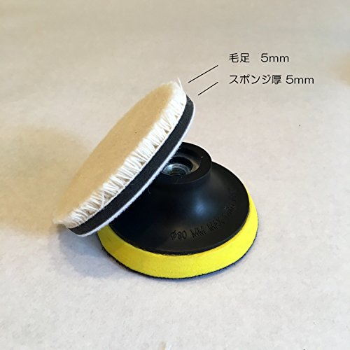 - [セット内容] 取付アタッチメント×1個 波型スポンジ×2個 平型スポンジ×2個 長毛ウールバフ(仕上げ用)×1個 短毛ウールバフ(小キズ取り用)×1個 ハンドスポンジ×3個 ネジ×1個(M10,ピッチ1.5,軸径8mm)