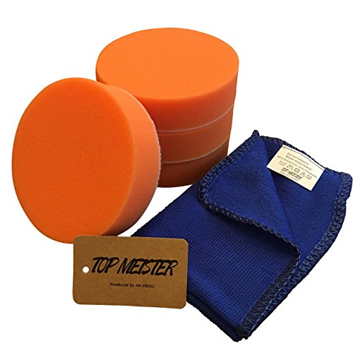 〈TOP MEISTER〉電動 カー ポリッシャー 交換 用 平型 スポンジ バフ 選べる3サイズ 80 / 100 / 125mm マイクロファイバー タオル つき(100mm×4枚)