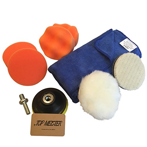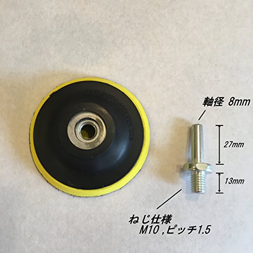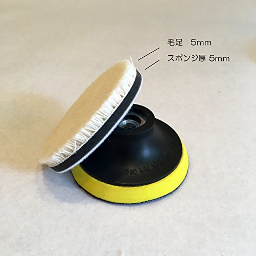 - [セット内容] 取付アタッチメント×1個 波型スポンジ×2個 平型スポンジ×2個 長毛ウールバフ(仕上げ用)×1個 短毛ウールバフ(小キズ取り用)×1個 ネジ×1個(M10,ピッチ1.5,軸径8mm) 拭き取りタオル×1枚 40cm×60cm