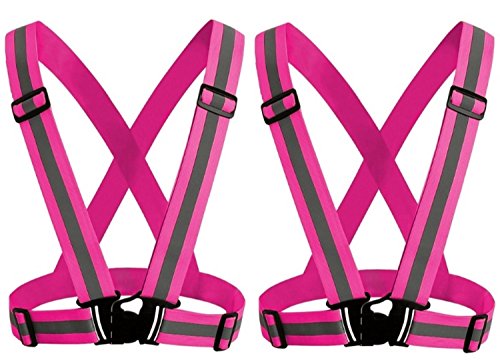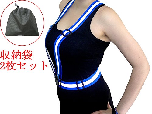 安全反射ベスト 蛍光ベルト 夜間作業 ジョギング 散歩 男女兼用 安全ベルト 収納袋付 選べる2個セット (2. ピンク2個)