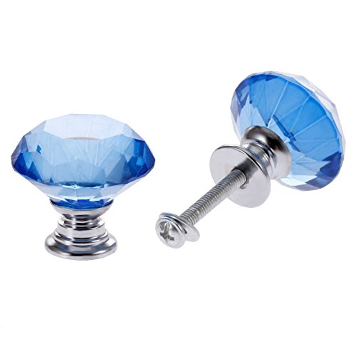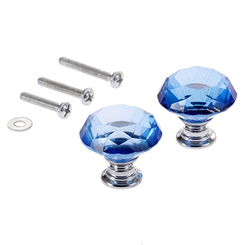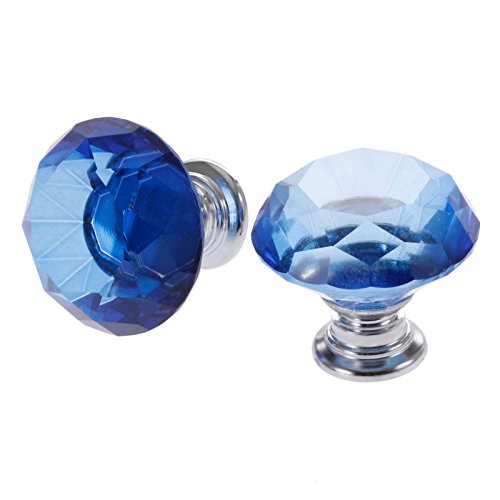 2個入りセット クリア クリスタル取っ手 ハンドル ガラスノブ 引き出し取っ手 手すり ネジ付き クリア クリスタル ガラス キャビネット 食器棚 ドレッサータンス (30mm) ブルー