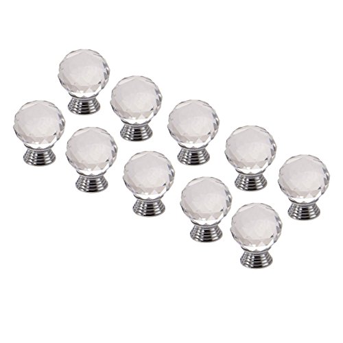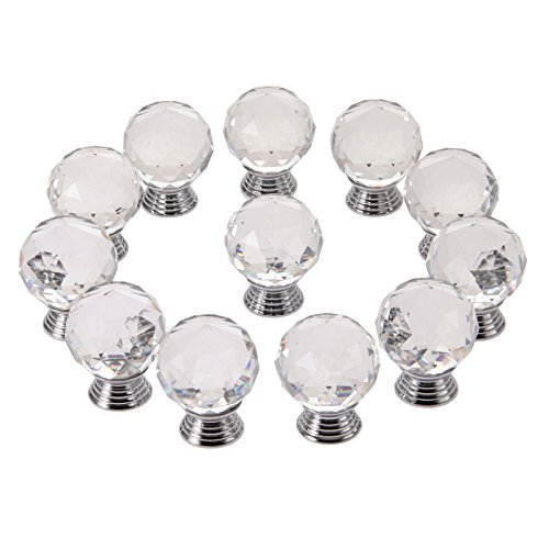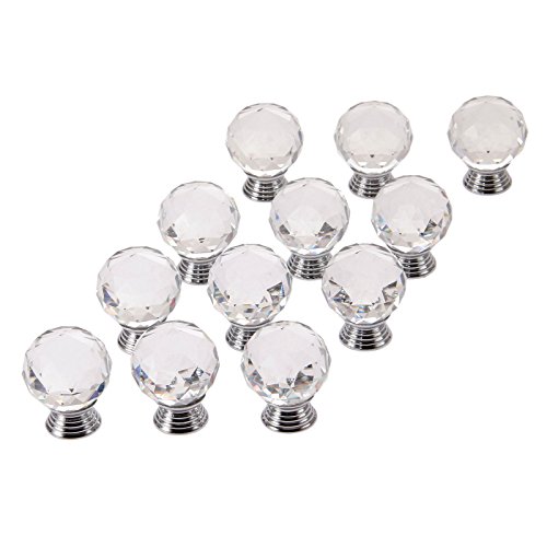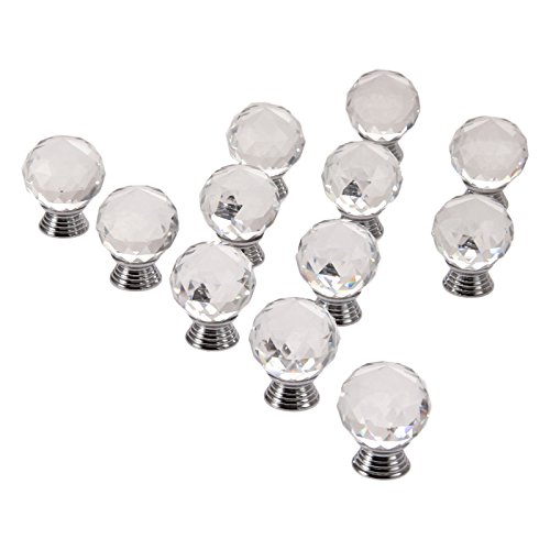 12個入りセット クリア クリスタル取っ手 ハンドル ガラスノブ 引き出し取っ手 手すり ネジ付き クリア クリスタル ガラス 球状 キャビネット 食器棚 ドレッサータンス (30mm)