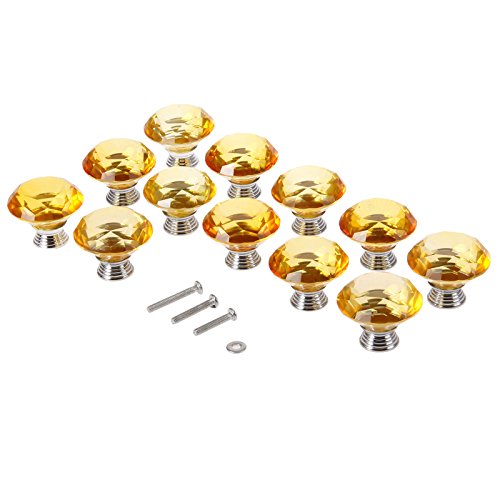 12個入りセット クリア クリスタル取っ手 ハンドル ガラスノブ 引き出し取っ手 手すり ネジ付き クリア クリスタル ガラス キャビネット 食器棚 ドレッサータンス (40mm)