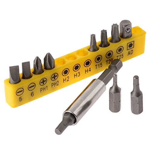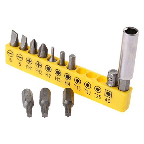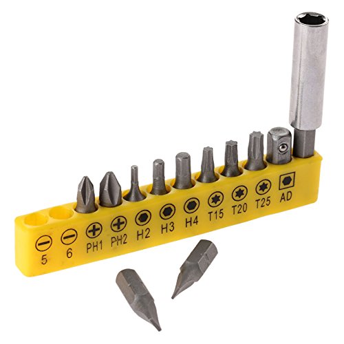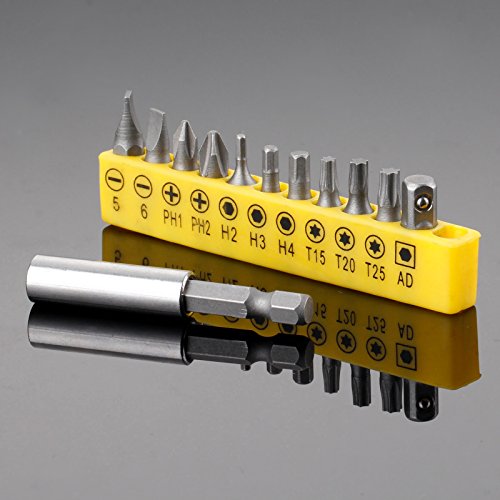 六角シャンク ドライバービット 延長ロッド付き 1/4" イエロー 12個入りセット