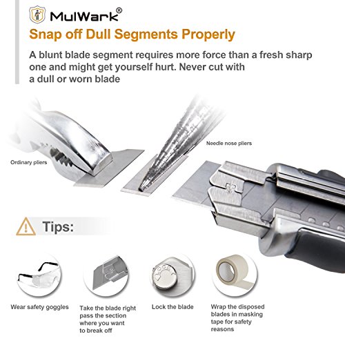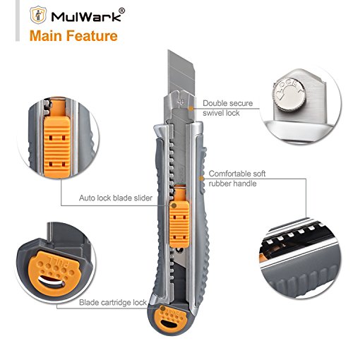 mulwark Heavy Duty防錆zinc-alloyスナップオフユーティリティナイフマルチボックスカッターforカーペット、ロープ、cardboard-5pc Extra Sharpクイック変更Razor Blades self-loaded、メタル安全ロックとラバーハンドル