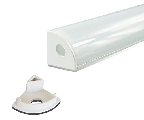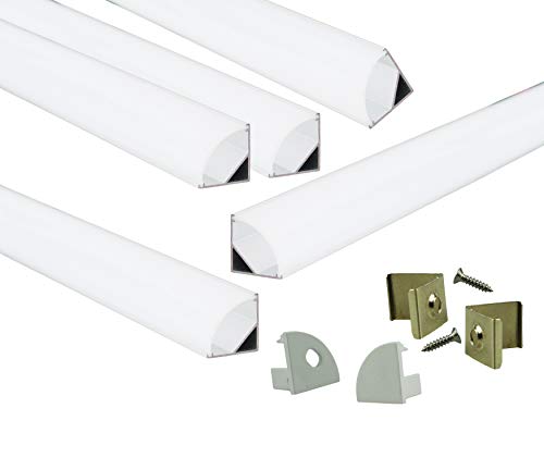 muzataアルミチャンネルのLEDストリップライト付きミルキーホワイトカーブディフューザーカバー、エンドキャップ、取り付けクリップ。右角度アルミプロファイル、v-shape、5 - Pack 3.3 Ft/1 m
