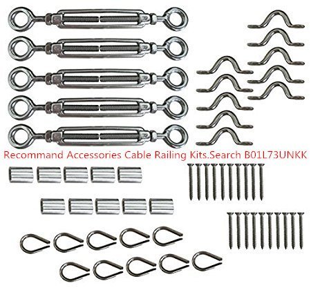 Muzata 5 パック ヘビーデューティーステンレス鋼製ケーブルレールキット 木製の柱用 DIYの欄干キット、あご形フォークターンバックル MZZ018