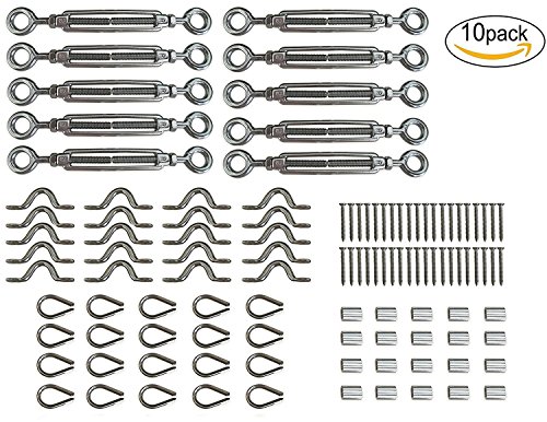 - 10pcs m5アイ/アイターンバックル, 20個m3ワイヤーロープ指ぬき, 20個m3ワイヤーを持つ継手5セット(手すりハードウェアケーブル&アイストラップ、20本のニッケルメッキされた銅製swages (口金)が搭載されているため、40球、自己タッピンねじ皿頭フィリップスドライブです。