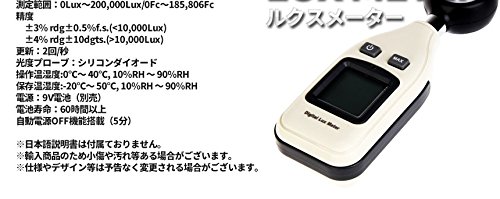 - 測定範囲:0Lux~200,000Lux/0Fc~185,806Fc