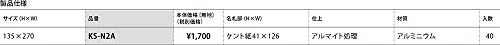 【KS-N2A】 ナスタ 表示・サイン 室名札 アルミニウム