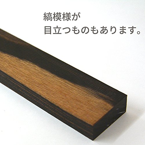 漆黒の色合いで緻密かつ重厚かつ堅固が特徴の黒檀です。細工用の木材として、家具、仏壇、仏具、建材、楽器、ブラシの柄などに使用されたりします。※天然素材ですので、木目や色目に差があります。※カット面に、バリなどが出る場合もございますので、紙やすりなどで削ってご使用ください。※帯黄色の縞模様があるものもございます。