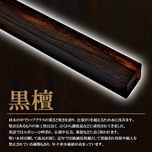 漆黒の色合いで緻密かつ重厚かつ堅固が特徴の黒檀です。細工用の木材として、家具、仏壇、仏具、建材、楽器、ブラシの柄などに使用されたりします。※天然素材ですので、木目や色目に差があります。※カット面に、バリなどが出る場合もございますので、紙やすりなどで削ってご使用ください。※帯黄色の縞模様があるものもございます。