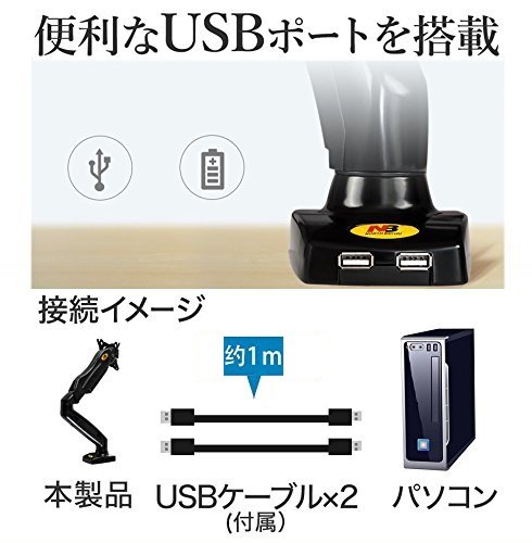 LEYOYO モニターアーム液晶ディスプレイアーム 2*USB3.0 17~27インチ対応 (黒)