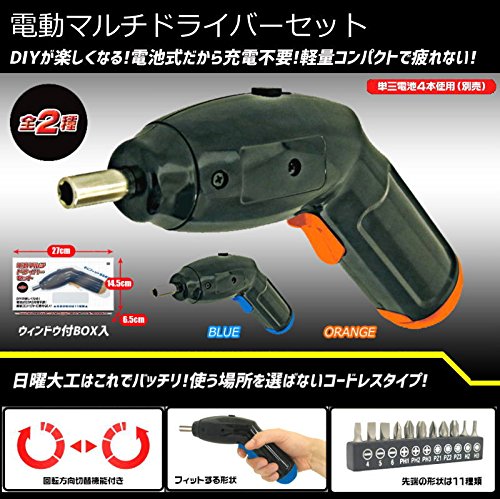電動マルチドライバーセット(乾電池式)先端の形状は11種類 2色アソート