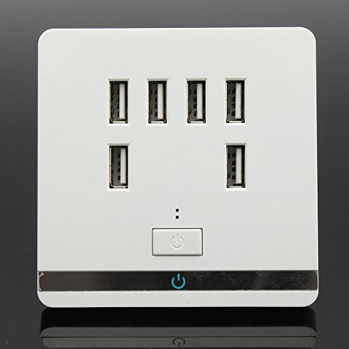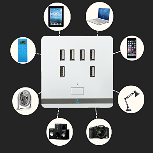 Excellway 3.4A AC Power Wall Receptacle Socket Plate Charger Outlet Panel with 6 USB Port
